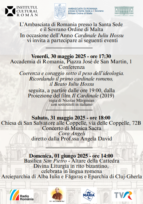 L’Ambasciata di Romania presso la Santa Sede e il Sovrano Ordine di Malta, in occasione dell’Anno Cardinale Iuliu Hossu, Vi invita […]